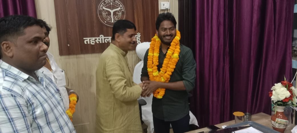 सोमवार को तहसील के कर्मचारियों ने उन्हें अंग वस्त्र देकर माल्यार्पण कर उन्हें सम्मानित किया।