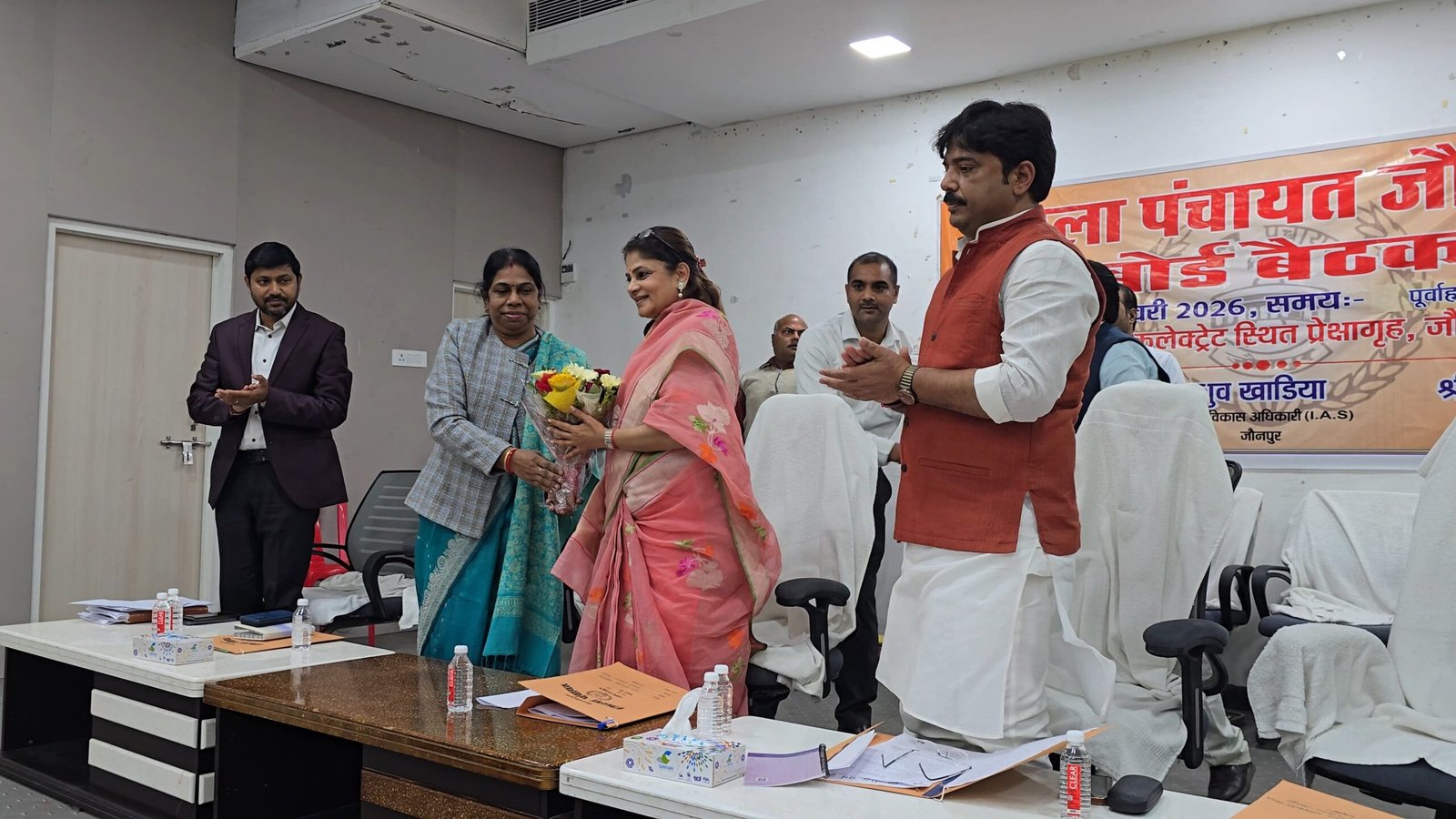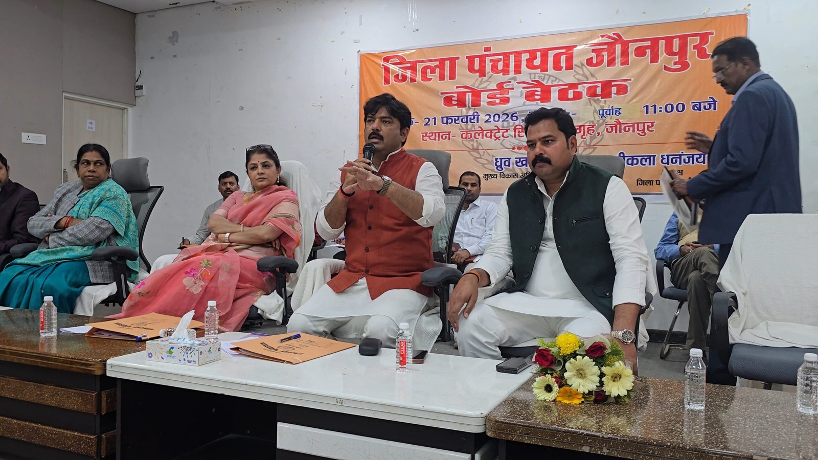 जौनपुर,संकल्प सवेरा। कलेक्ट्रेट प्रेक्षागृह, जौनपुर में जिला पंचायत बोर्ड की बैठक श्रीकला धनन्जय सिंह, अध्यक्ष की अध्यक्षता में आहूत की गयी है। बैठक मे अखिलेश कुमार, अपर मुख्य अधिकारी बृजेश कुमार सिंह प्रिन्शु विधान परिषद सदस्य, प्रमुखगण, जिला पंचायत सदस्यगण, जिला विकास अधिकारी जौनपुर, उपायुक्त मनरेगा, जौनपुर का स्वागत करने के पश्चात अध्यक्ष के अनुमति से बैठक की कार्यवाही प्रारम्भ की गयी। बैठक में बिन्दुवार जिला पंचायत के गत बैठक की कार्यवाही की पुष्टि किया गया, वित्तीय वर्ष 2026-27 के 15वाँ वित्त (टाईड ग्रान्ट व अनटाईड ग्रान्ट) एवं पंचम राज्य वित्त आयोग योजना की वार्षिक कार्ययोजना बनाये जाने पर विचार, जिला पंचायत का पुनरीक्षित वजट वित्तीय वर्ष 2025-26 के मु0 144.47 करोड़ रूपये, जिला पंचायत का मूल वजट वित्तीय वर्ष 2026-27 के 99.79 करोड़ रूपये, के साथ जिला पंचायत द्वारा मानचित्र स्वीकृति के दरो के संशोधन पर विचार करते हुए निर्माण कार्य से संबन्धित विभिन्न समितियों एवं नियमों के अन्तर्गत जनप्रतिनिधियों के प्राप्त प्रस्तावों के स्वीकृति पर विचार व जिला पंचायत, जौनपुर में प्राप्त आई० जी० आर० एस०, तहसील दिवस के माध्यम से निर्माण कार्य सम्बन्धित प्राप्त प्रस्ताव पर विचार किया गया एवं अन्य प्रस्ताव अध्यक्ष महोदय की अनुमति से सदस्यगण, जिला पंचायत द्वारा प्रस्तुत प्रस्तावो पर चर्चा किया गया, जिसमें लाइसेंस शुल्क दरो में वृद्धि का प्रस्ताव पास हुआ। कतिपयं सदस्यगण द्वारा जनपद जौनपुर के ग्रामीण क्षेत्रो में जिला पंचायत द्वारा चैमुखी विकास के कार्यों के गुणवत्ता की सराहना की गयी। बृजेश कुमार सिंह प्रिन्सू, विधान परिषद सदस्य द्वारा अवगत कराया गया कि जिला पंचायत के कार्यों की गुणवत्ता बहुत ही अच्छी है, जिसके लिए अध्यक्ष महोदया को बधाई देता हूँ। पिछले दिन चल रहे विधान सभा में मुख्यमंत्री योगी आदित्यनाथ के सरकार द्वारा अब तक का सबसे भारी भरकम बजट लगभग 9 लाख करोड रूपये का पास हुआ, जिसमें 32 हजार करोड़ रूपये का बजट पंचायतो को सशक्त व जागरूक बनाने के लिए पास किया गया है, उसमें जनपद के सभी विकास खण्डो में बारात घर एवं ग्राम पंचायत स्तर पर डिजिटल लाईब्रेरी बनाये जाने हेतु निर्णय लिया गया है।बैठक में सदस्य अमरेश रतन सिंह, ललई सरोज, लक्ष्मीकान्त यादव, अमर बहादुर यादव, पवन कुमार, डा० सुनीता बर्मा, द्रौपती यादव, श्रीमती ष्णा सिंह, उषा किरन आदि सदस्य एवं संजय सिंह प्रमुख क्षेत्र पंचायत, सिकरारा, माण्डवी सिंह प्रमुख क्षेत्र पंचायत, महराजगंज, विमलेश यादव प्रमुख क्षेत्र पंचायत, धर्मापुर, तथा अन्य विकास खण्डो के ब्लाक प्रमुखगणो की गरिमामयी उपस्थिति रही तथा पूर्व में क्षेत्र पंचायत, बक्शा के प्रमुख स्व० मन