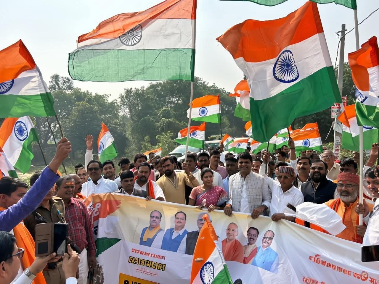 बरसठी संकल्प सवेरा (जौनपुर ) | भारत रत्न लौह पुरुष सरदार वल्लभभाई पटेल की 150वीं जयंती के अवसर पर बुधवार को ग्राम पंचायत हंसिया सचिवालय भवन से धनीपुर बगीचा तक भव्य पदयात्रा एवं जनसभा का आयोजन किया गया। पदयात्रा में सैकड़ों कार्यकर्ता, स्कूली बच्चे और स्थानीय लोगो के हाथों में तिरंगा झंडा लिए भक्ति गीतों की धुन पर शामिल हुए। यात्रा मियाचक बाजार, मनीपुर व बरसठी बाजार से होते हुए धनीपुर बगीचे में पहुँची, जहाँ जनसभा का आयोजन हुआ। कार्यक्रम का शुभारंभ सरदार पटेल के चित्र पर पुष्पार्पण और दीपप्रज्वलन के साथ किया गया।