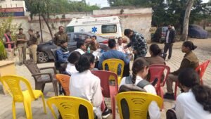 डा० जितेन्द्र मुख्य वक्ता* के रूप में उपस्थित होकर थाना परिसर में मौजूद थानाध्यक्ष, सिपाहियों एवं अन्य कर्मचारियों को स्वास्थ्य संबंधी महत्वपूर्ण जानकारियाँ प्रदान कीं। उन्होंने शुगर (मुधमेह) और बीपी (हाई/लो ब्लड) से होने वाली जटिलताओं के बारे में विस्तार से बताया। उन्होंने कहा कि बदलते मौसम, खासकर ठंड के दौरान, इन बीमारियों का खतरा और बढ़ जाता है। इसलिए मरोजों को नियमित रूप से अपनी जांच कराते रहना चाहिए तथा समय पर दवाओं का सेवन करना अत्यंत आवश्यक है।