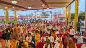 महारुद्र यज्ञ के पूर्व निकाली गई भव्य कलश यात्रा  108 कन्याओं ने कलश लेकर गांव का किया भ्रमण