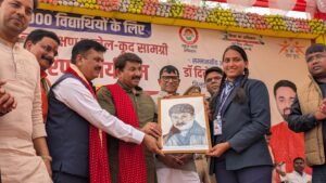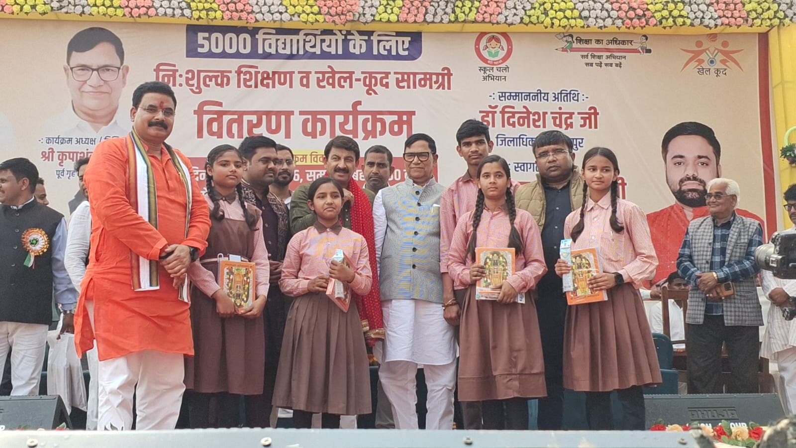 खुटहन, संकल्प सवेरा जौनपुर।पूर्व माध्यमिक विद्यालय शाहपुर सानी में शनिवार को वरिष्ठ समाजसेवी सतीश जयकृष्ण तिवारी द्वारा आयोजित पांच हजार छात्रों को शिक्षण सामग्री किट वितरण समारोह को बतौर मुख्य अतिथि सांसद, फिल्म अभिनेता व गायक मनोज तिवारी ने संबोधित करते हुए कहा कि बच्चे भविष्य के कर्णधार हैं। उन्हें संवार कर निखारने की जिम्मेदारी सिर्फ शिक्षकों पर ही नहीं, वल्कि हम सभी की है। जिस समाज और देश की भावी पीढ़ी उज्जवल नहीं है। उसका पतन निश्चित है।