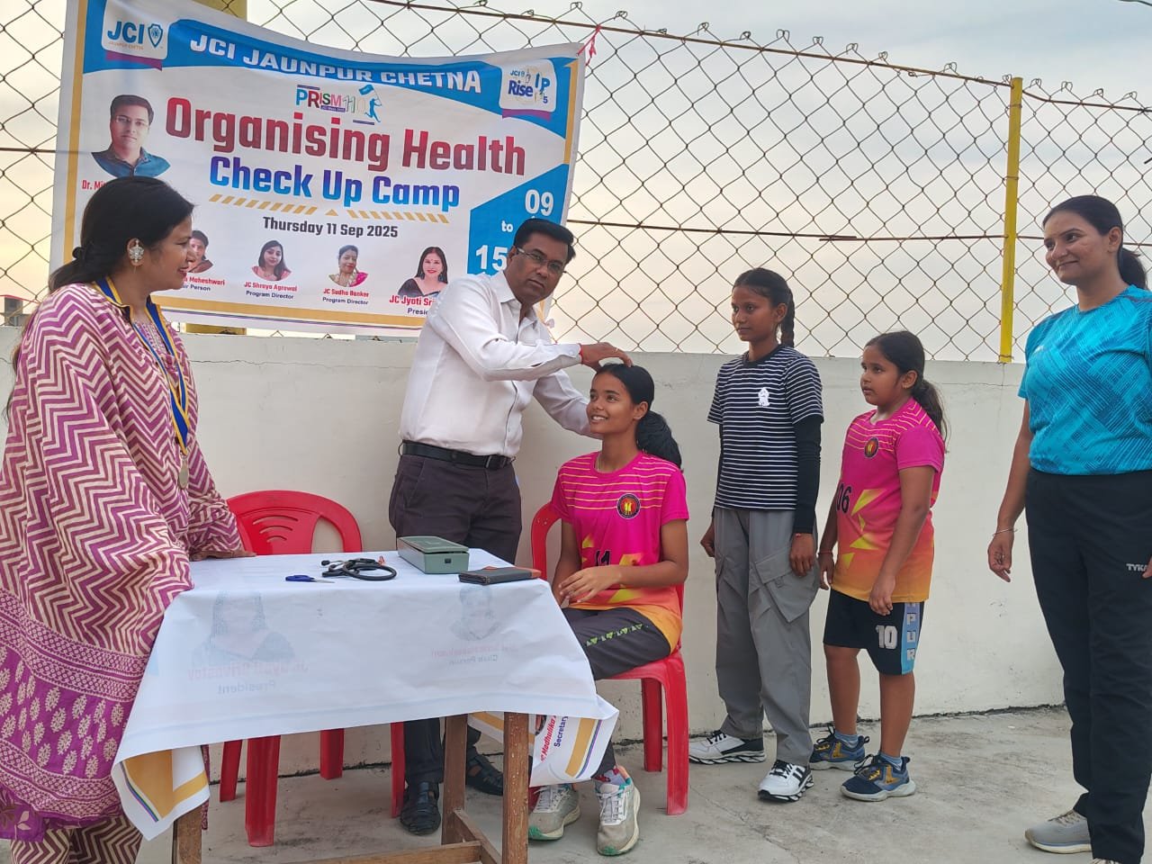 जौनपुर,संकल्प सवेरा।जेसीआई चेतना द्वारा आयोजित जेसी सप्ताह के तीसरे दिन दो कार्यक्रमों का आयोजन किया गया।पहला कार्यक्रम स्वास्थ्य जांच शिविर उमानाथ सिंह स्टेडियम जौनपुर में आयोजित किया गया। शिविर में प्रतिष्ठित फिजियोथेरेपिस्ट डॉ. मिथिलेश श्रीवास्तव ने बच्चों सहित कई लोगों का स्वास्थ्य परीक्षण किया तथा खेलों में फिजिकल एक्टिविटी व वर्कआउट के बारे विधिवत जानकारी भी दी।