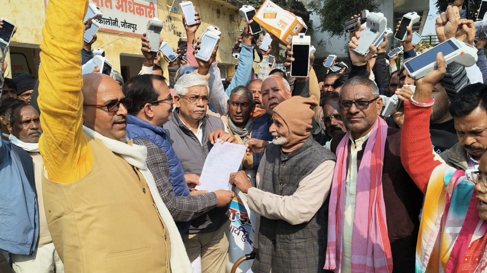 कलेक्ट्रेट परिसर में प्रदर्शन कर कोटेदारों ने ई मशीनें जमा करने की कोशिश की