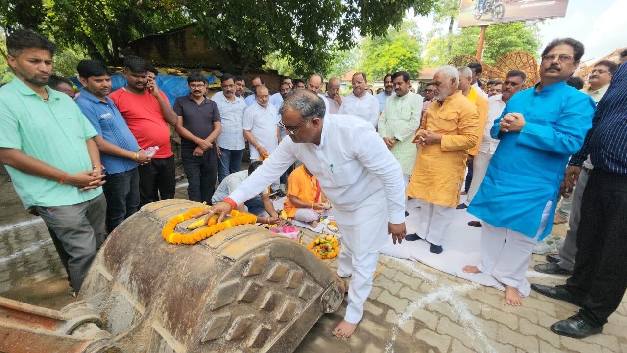 मंत्री गिरीश यादव ने जगदीशपुर रेलवे फ्लाईओवर निर्माण की रखी आधारशिला