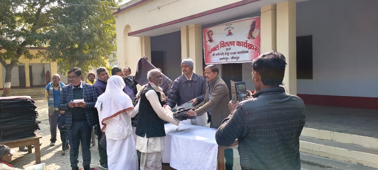 सुइथाकला संकल्प सवेरा जौनपुर। विकासखंड क्षेत्र के श्री सर्वेश्वरी समूह संस्थान शाखा समोधपुर के सौजन्य से शाखा के उपाध्यक्ष हृदय प्रसाद सिंह रानू की अध्यक्षता में बुधवार को कंबल वितरण कार्यक्रम आयोजित किया गया। मुख्य अतिथि राज्य शिक्षक पुरस्कार प्राप्त शिक्षक सतीश सिंह ने अघोरेश्वर महाप्रभु एवं पूज्यपाद गुरुपद संभव राम के चित्र पर माल्यार्पण, पूजा अर्चना व आरती के साथ कार्यक्रम का शुभारंभ किया। मुख्य अतिथि के हाथों 130 जरूरतमंदों को कंबल वितरित किया गया। सतीश सिंह ने कहा कि सर्वेश्वरी समूह संस्थान मानवता की सेवा के लिए उत्कृष्ट कार्य कर रहा है। बताया कि श्री सर्वेश्वरी समूह का मूल मंत्र दीन-दुखियों, असहाय, गरीबों एवं पीड़ितों की निस्वार्थ सेवा है। उन्होंने सर्वेश्वरी समूह के परोपकार के कार्य की सराहना करते हुए कहा कि समाज के दबे-कुचले और शोषित-वंचित समाज के उत्थान के लिए संस्थान