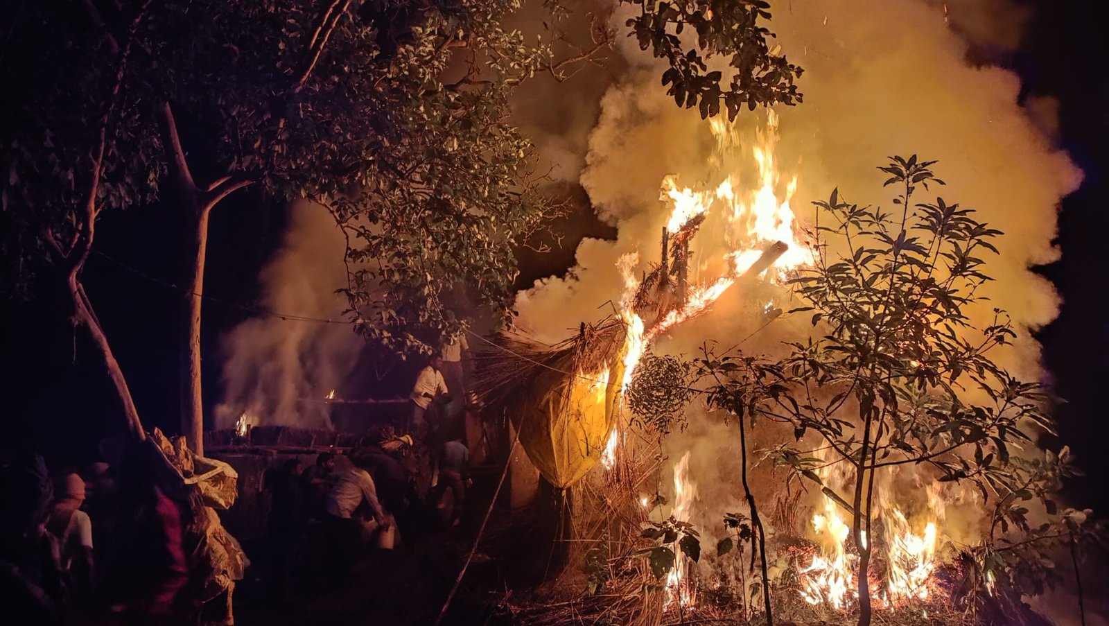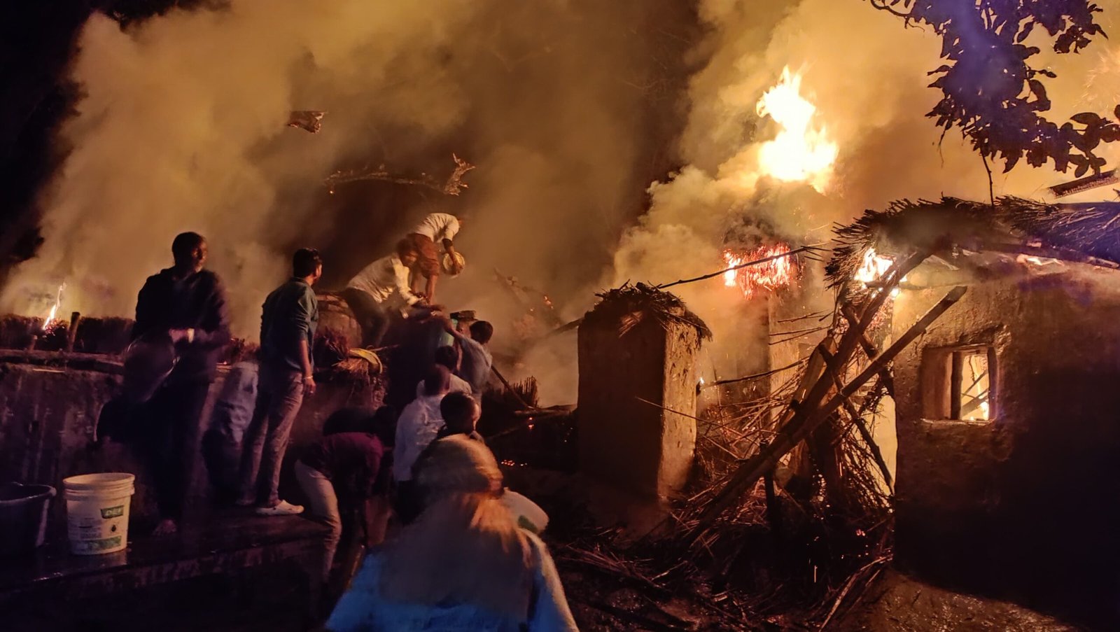 नरहरपुर में शॉर्ट सर्किट से तीन रिहायशी छप्पर राख