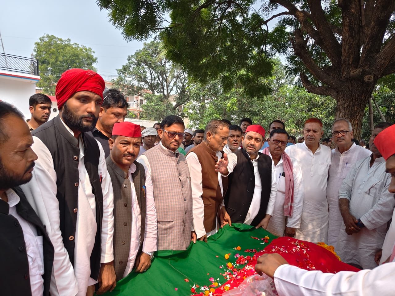 केराकत विधानसभा क्षेत्र के पूर्व विधायक सोमारूराम सरोज को पार्टी का झंडा ओढ़ाकर दी गई श्रद्धांजलि